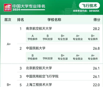 根据提供的信息,南京航空航天大学在2024年的航空航天工程专业排名中表现突出,具体排名如下: