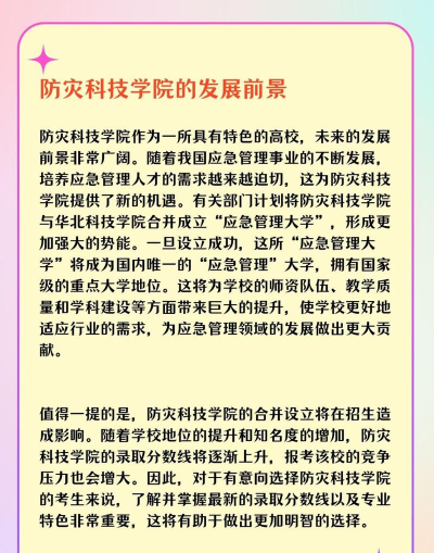 这些专业以培养应用型人才为主,旨在为社会提供防灾减灾和应急管理领域的专业人才。防灾科技学院在防灾减灾领域享有较高的声誉,并为该领域培养了大量专业人才