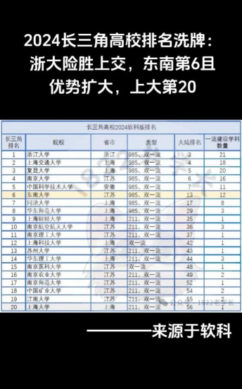东南大学、 华东师范大学、 上海财经大学等也进入了长三角地区高校的前十名。