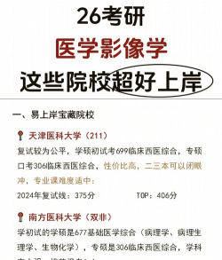 对于影像学专业考研,以下是一些推荐的学科和方向: