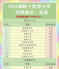 泰晤士高等教育发布的2020年全球大学专业排行榜涵盖了工程学、商科、理学、计算机、生命科学、法学等11个学科领域。以下是一些排名情况: