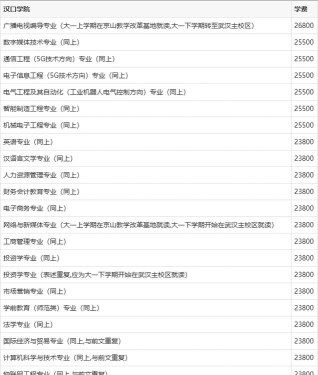 汉口学院的专业排名如下: