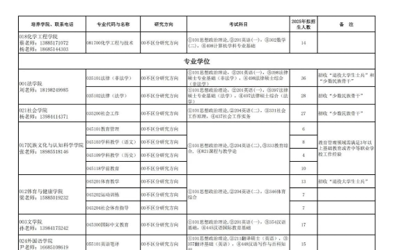 中国少数民族语言文学、 数学与应用数学、 民族学、 汉语言学、 体育教育、 美术学、 应用化学、 音乐学: