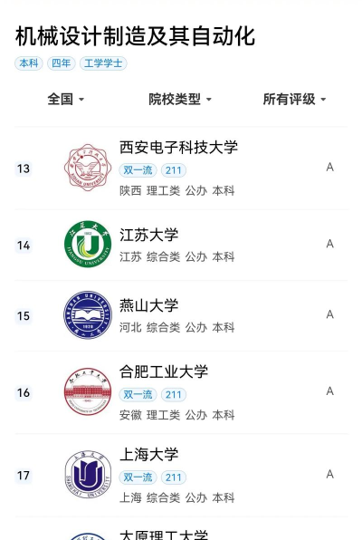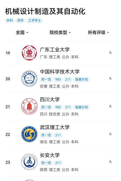 设计制造专业,尤其是机械设计制造及其自动化专业,在大学排名中通常表现优异。根据最近的数据,以下是一些在该专业排名中表现突出的大学: