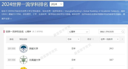 心理学专业在日本具有较高的知名度,入选日本“超级国际化大学计划”A类顶尖校。