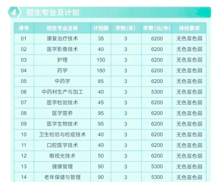 专业:护理、药剂、口腔医学、医学检验、康复治疗