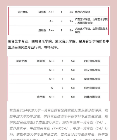 根据提供的信息,以下是2024年中国音乐学专业排名的部分情况: