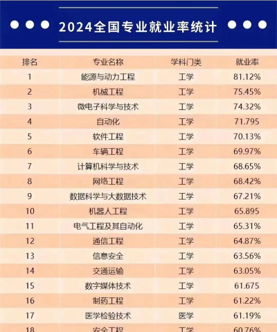 根据提供的信息,以下是2024年初中好就业的专业排名,这些专业是根据就业率、市场需求、薪资水平以及行业趋势等因素综合评估得出的: