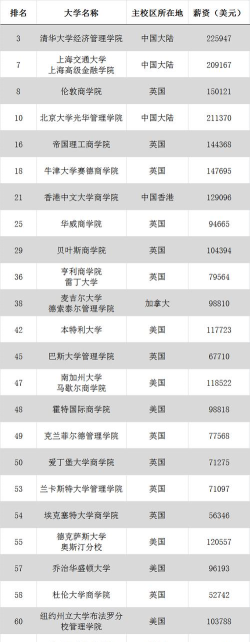 中国:清华大学经济管理学院在无需工作经验的金融硕士排名中位列第5,上海交通大学高级金融学院上升5个名次,位列第8。