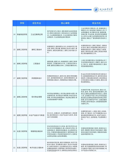 请注意,这些排名信息来源于《中国科教评价网》的金平果排行榜数据库,排名可能会随着时间和评价标准的更新而有所变化。建议访问金平果大学专业排名网站或九江职业大学官方网站获取最新信息