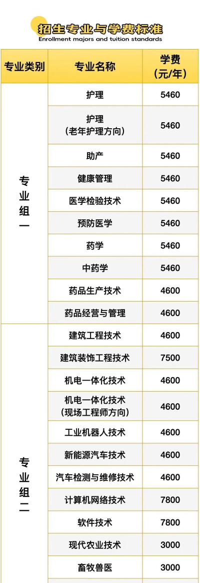 学科涵盖:以医学教育为主,兼有护理、药学、医学影像技术等专科层次专业。