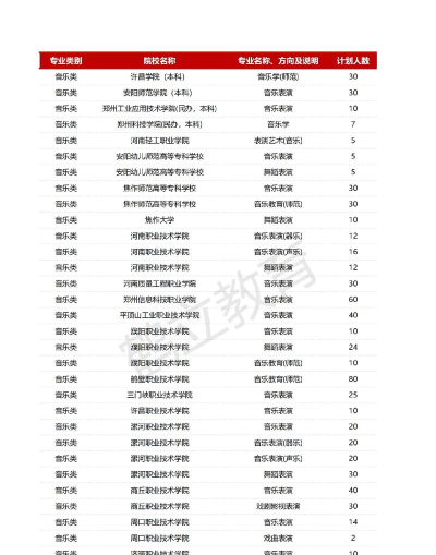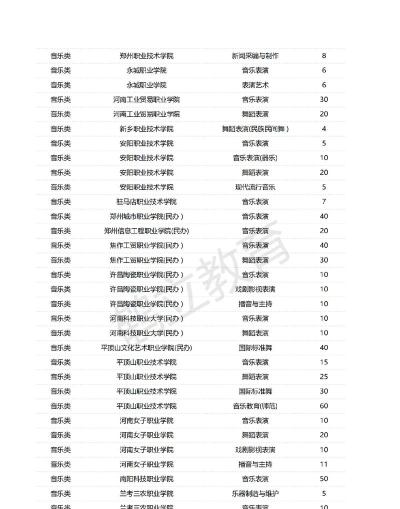 根据提供的信息,以下是河南省音乐类专业排名情况:
