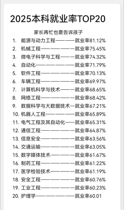 以上信息基于最近的数据和趋势,但请注意,就业率可能会随着时间和行业变化而有所变动。如果您需要最新的详细排名信息,建议查询权威的教育资源或就业统计报告