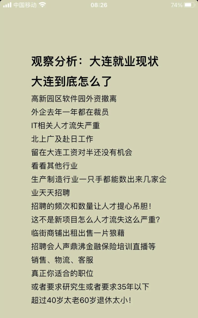 大连的就业情况因行业、个人能力、专业背景等因素而异。以下是一些关于大连就业形势的信息: