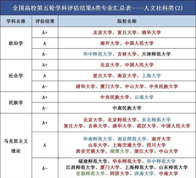 人文社科类:北京大学以15个总数位居榜首,其中A+学科13个,A学科1个,A-学科1个。