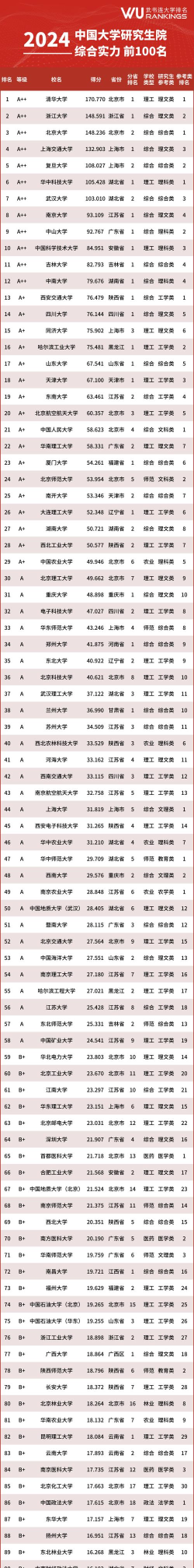 根据提供的信息,以下是2024年中国大学研究生一级学科的部分排名情况: