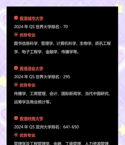 推荐院校:香港大学、香港中文大学、香港城市大学、香港浸会大学。