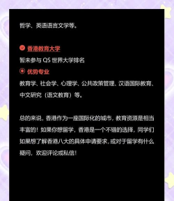 香港作为亚洲的金融中心,拥有众多世界知名大学,提供多样化的专业选择。以下是一些推荐的专业: