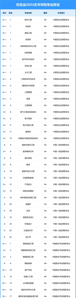 根据提供的信息,以下是2024年湖北文华学院的专业排名情况: