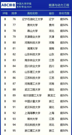 根据提供的信息,以下是能源与动力工程专业的一些大学排名情况: