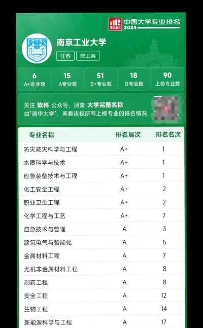 以上排名信息根据最近的数据更新,具体情况可能会随着时间和不同评价机构的排名有所变动。建议关注南京工业大学的官方渠道获取最新信息