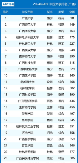 根据提供的信息,以下是2024年广西高校历史专业的排名情况: