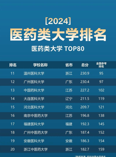 根据提供的信息,以下是2024年中国医药类大学的部分排名情况: