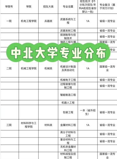 中北大学在多个专业领域都有较高的排名和评价,以下是一些中北大学知名专业的排名信息: