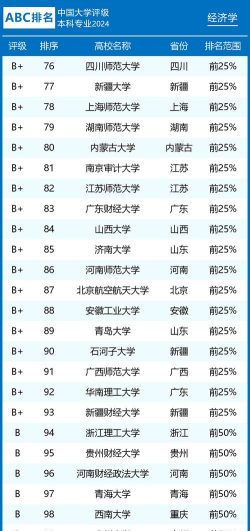 根据提供的信息,以下是2024年经济学专业排名的一些要点: