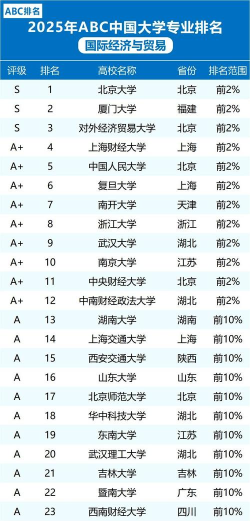 当前国际贸易专业的实力排名如下: