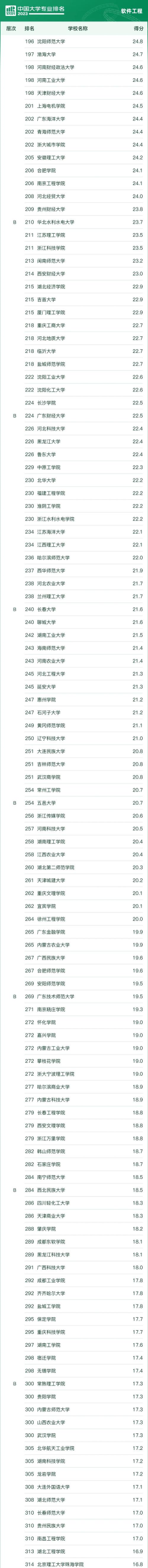 根据提供的信息,以下是2024年工科类软件专业排名的部分信息:
