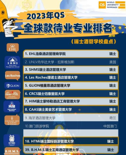 2024年酒店管理专业全球排名尚未公布具体信息,但瑞士院校在酒店管理专业中表现突出,全球前10名中有7所瑞士大学。