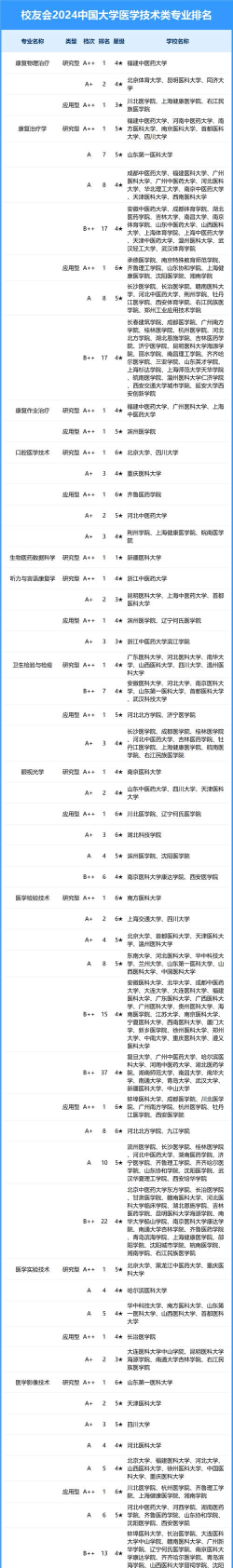 排名情况:北京协和医学院、北京大学、上海交通大学排名前三。