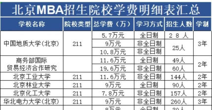 1. 清华大学五道口金融学院 - 清华-康奈尔双学位金融MBA项目,学费约为75万元人民币。