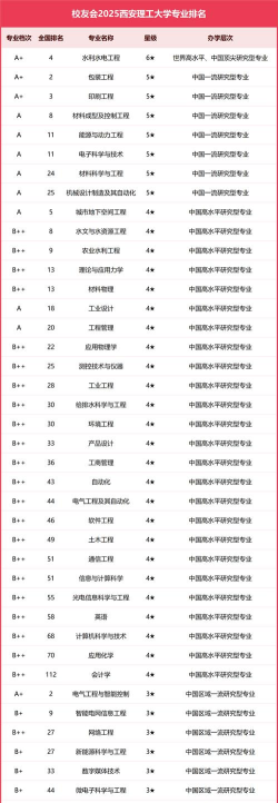 西安是中国著名的历史文化名城,拥有众多高等教育机构,其中包括一些在全国具有较高声誉的院校。以下是一些西安高校的专业排名情况: