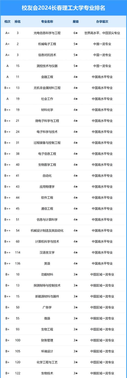 根据提供的信息,以下是2024年长春理工大学的专业排名情况:
