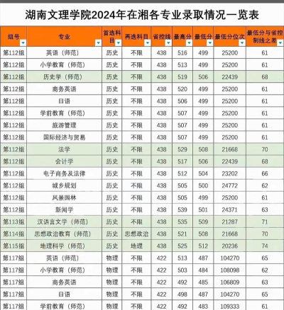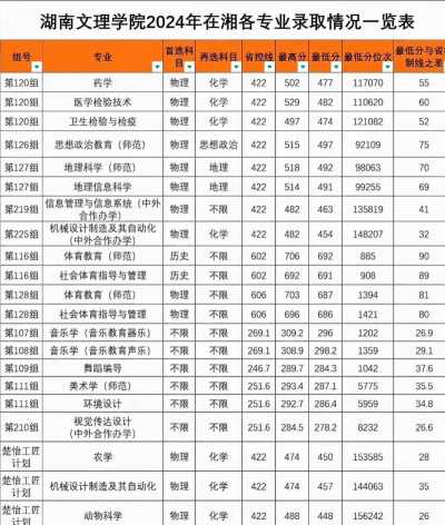 根据提供的信息,以下是湖南文理学院在2024年的一些专业排名情况: