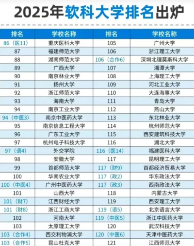 排名涵盖的专业数量为627个,上榜的高校数量为1103所,上榜的专业点总数为31414个。