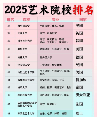 以上排名基于最近发布的2024年校友会中国艺术类大学排名信息。请注意,排名可能会随着时间和各种因素的变化而有所调整。