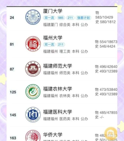 根据提供的信息,以下是福建省内几所知名高校的专业排名情况: