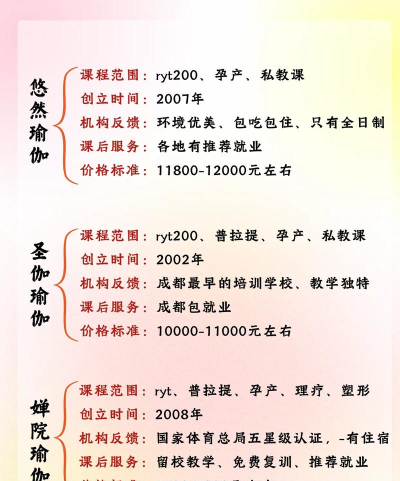 特点:一体化瑜伽学习培训,课程涵盖多个系列,有央视认证。