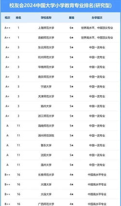 根据提供的信息,以下是2024年中国大学教育专业(包括学前教育专业和小教教育专业)的排名情况: