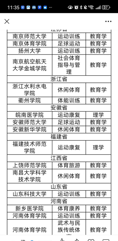 排名靠前的院校:武汉体育学院、南京体育学院等。