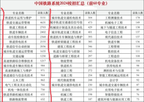根据提供的信息,以下是2024年铁路专业排名的部分信息: