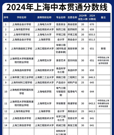 根据提供的信息,以下是2024年高本贯通专业的排名情况: