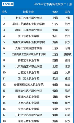 根据提供的信息,以下是2024年部分高职美术学校排名情况: