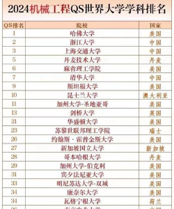 QS世界大学2024年机械工程排名(部分信息):