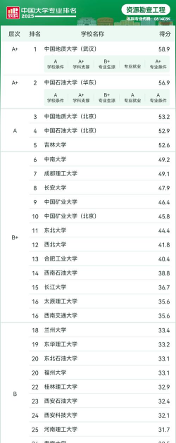 地质资源与地质工程专业排名