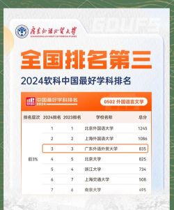 广东外语外贸大学(广外)在多个学科领域表现突出,以下是其优势专业的排名情况: