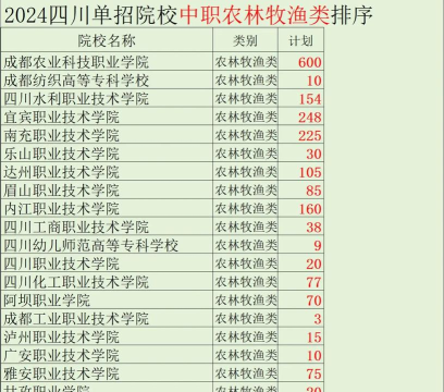 根据提供的信息,以下是2024年中国农林畜牧专业排名情况: